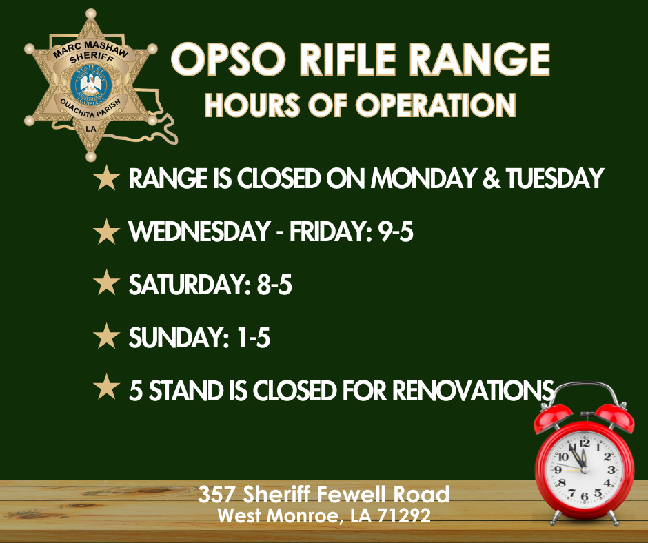 Please note the Hours of Operation at the OPSO Rifle Range!