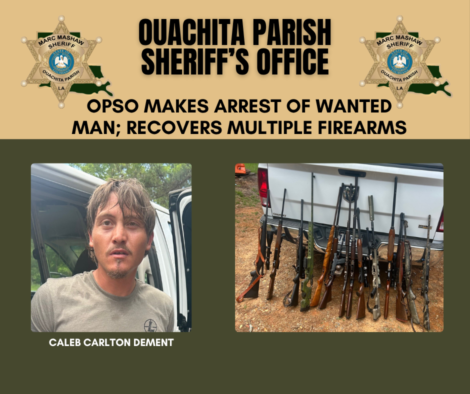 (Ouachita Parish, LA) – On April 16, 2026, the Ouachita Parish Sheriff’s Office Warrants Division arrested Caleb Carlton Dement who was previously wanted on multiple felony warrants.