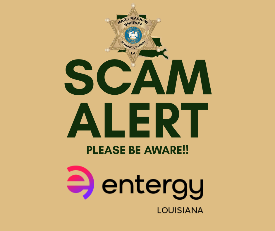 The Ouachita Parish Sheriff’s Office has received reports of citizens being contacted by individuals claiming they are severely behind on their Entergy bill and must call a 1-866 number immediately or risk having their power disconnected within 24 hours.