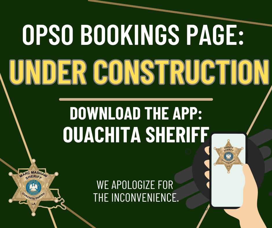 The OPSO Bookings Page is being reconfigured. For the latest booking information, download the Ouachita Sheriff App.